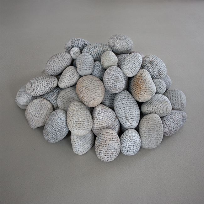 En una época en la que todo tiende a desmaterializarse y en la que el imperio de las pantallas sucede al del papel, nosotras decidimos escribir un cuaderno utilizando la piedra como soporte.