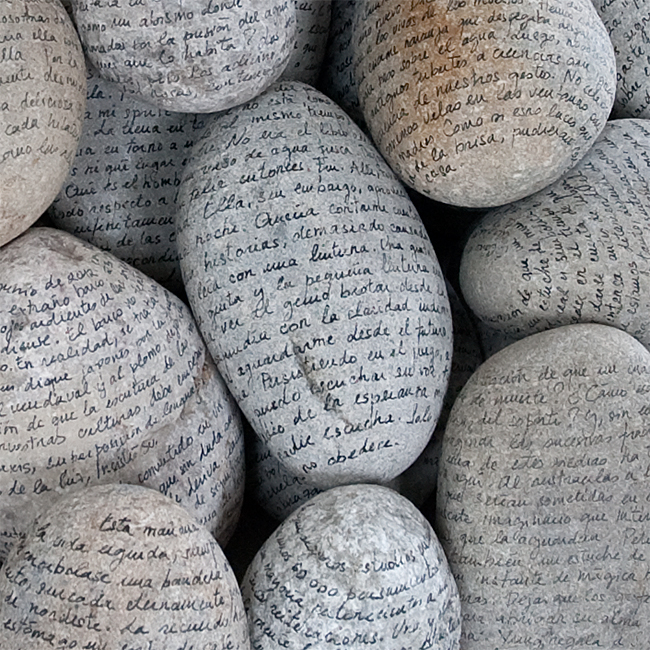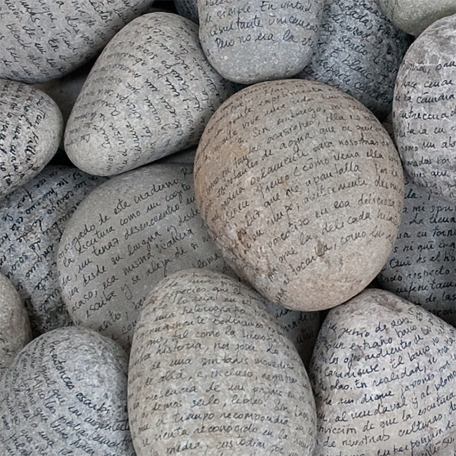 Si la sensualidad de la piedra nos remite al mundo de la naturaleza de la que procede, al efecto combinado del tiempo y del oleaje, los textos nos llevan al mundo de una cultura que se ha ido alejando cada vez más de lo natural. MEDITACIÓN #184 EL CUADERNO DE PIEDRA