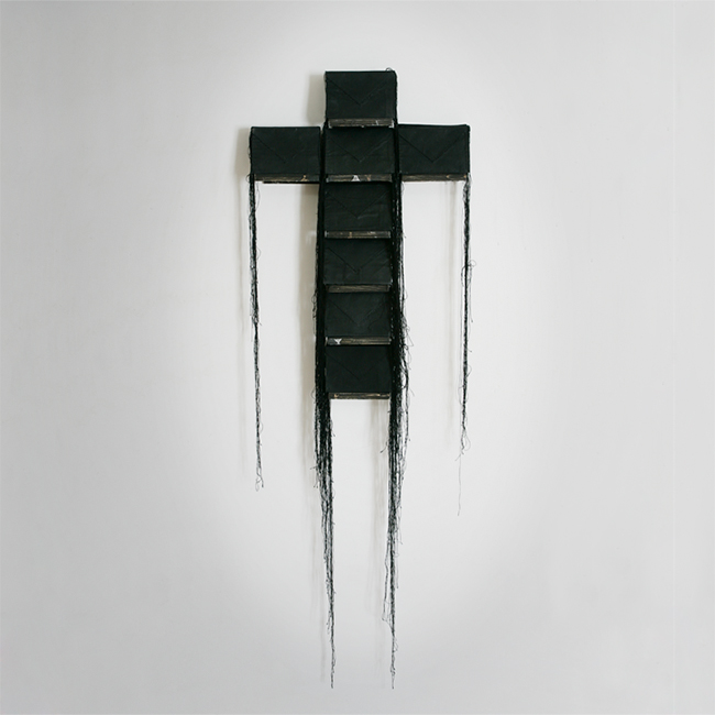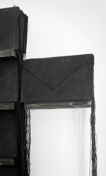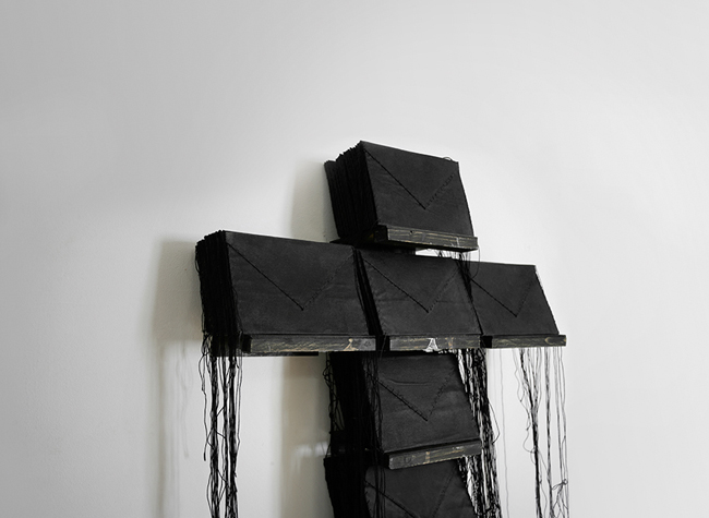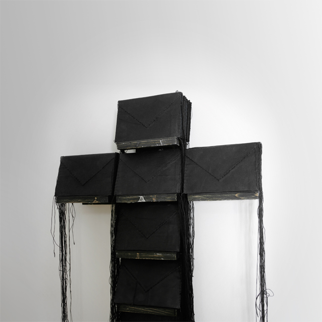 Recogiendo el reto, nunca concluso, de una verbalidad insuficiente, los sobres encerados, realizados a partir de telas antiguas teñidas y cosidas a mano, se organizan en la forma de una cruz. En coherencia con la poética postmetafísca y postmaterialista de Alonso y Marful, la obra evoca, a un tiempo, la muerte de Dios (mero flatus vocis consagrado por el uso en el seno de una tradición milenaria) y una lengua que se ausenta y prescribe en el seno de una meditación sin palabras.